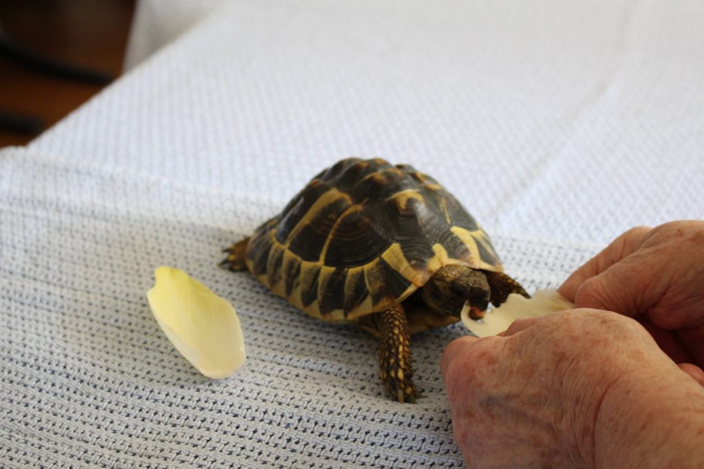 Les personnes âgées sont fréquemment confrontées au sentiment de solitude. Que ce soit à domicile ou dans un EMS, la zoothérapie permet de briser le quotidien et de sortir de cette solitude pour un temps. Le temps de câliner l’animal, de lui préparer ses friandises, de lui raconter des anecdotes du temps de leur jeunesse et d’exercer sa mémoire en se rappelant du nom de chaque animal présent. La zoothérapie permet également de réduire l’anxiété, d’encourager la mobilité de la personne vieillissante, de stimuler le langage et la discussion, et bien plus encore.